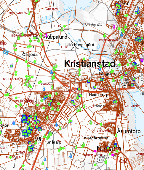 I Kristianstad är det lite varierande förutsättningar för bergvärme. Om man tittar på Vä som ligger strax utanför Kristianstad så är det många som har borrat för bergvärme då det är ganska nära till berg. 10-20 meter till berg. Men tittar man inne i Kristianstad så är det betydligt längre till berg, ca 30 meter till berg vilket medför extra kostnader i samband med borrningen. Nedan är en karta på de borrhålen som är inrapporterade till SGU (Sveriges Geologiska Undersökning)